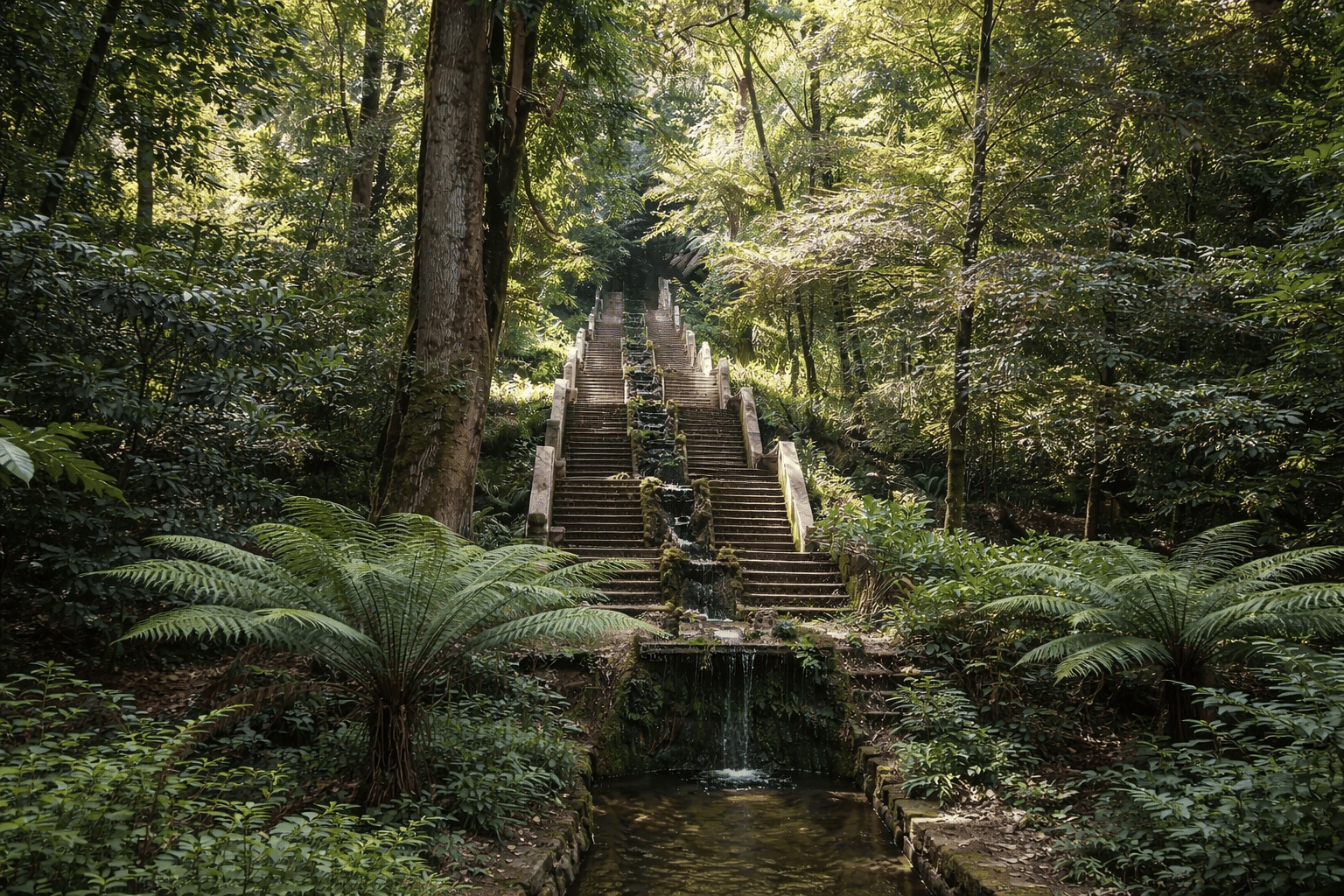 The afternoon unfolds in the calm surroundings of the Buçaco National Forest, one of Portugal’s most remarkable natural and historical landscapes. Enclosed by ancient walls, this forest combines botanical richness with a sense of quiet retreat. A gentle walk along the Buçaco forest walk, following the Luso Water Trail, offers an easy and relaxing way to experience the area’s natural beauty, making it ideal for travellers seeking easy walking trails in Portugal.