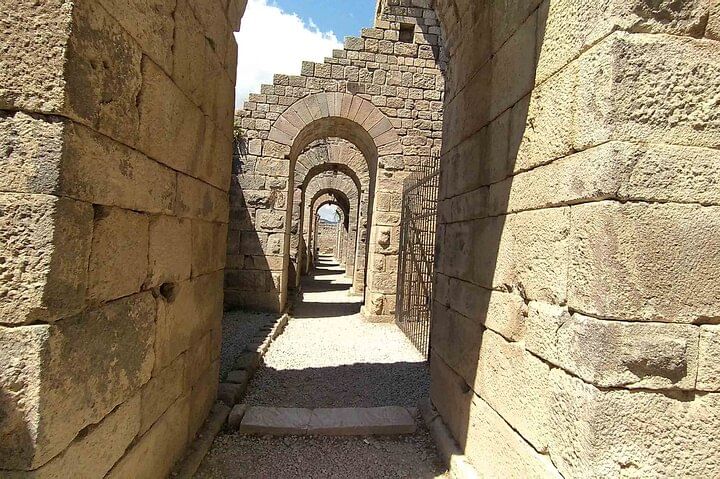 After exploring Pergamon, you'll head to the nearby Asclepion, an ancient healing center dedicated to the god of medicine, Asclepius. Here, you'll learn about the site's history and see the remains of the medical facilities, including the Roman baths, the temple of Asclepius, and the underground passageways.